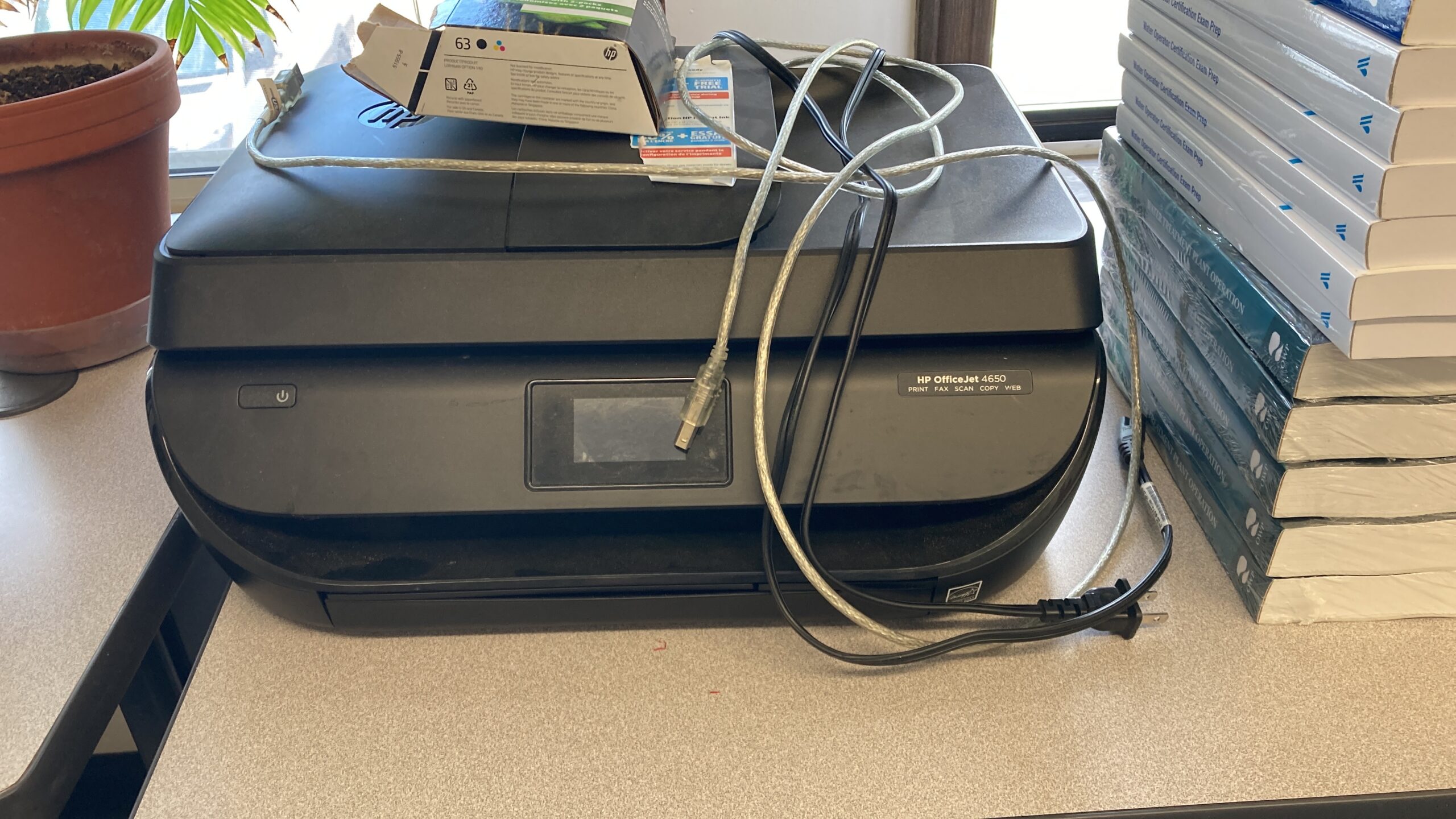 HP OfficeJet Pro 4650 printer and scanner. Uses HP 63ink. Comes with one replacement tri-color ink cartridge.